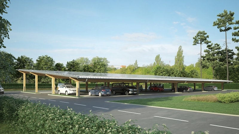 Durch maximale Flexibilität der Solar-Überdachung von GROHA® können wir Ihre PV-Überdachung wie gewünscht an die Gegebenheiten bestehender Parkplätze anpassen. Die Tragwerke Ihrer Photovoltaik-Parkplatzüberdachung errichten wir mit mehr als 40 Jahren Erfahrung im Ingenieurs-Holzbau entweder aus Holz oder in Holz-Stahl-Hybridbauweise. Fragen Sie gerne unverbindlich an und wir beraten Sie zu Ihrer individuellen PV-Parkplatzüberdachung.
